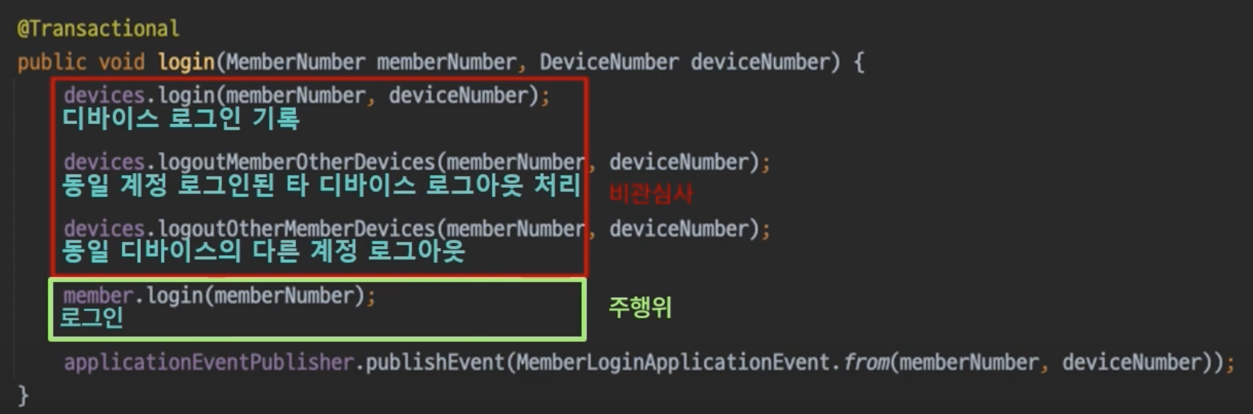 - 스레드 레벨 의존은 분리했지만 인증해제시 후속작업 필요하다는 사항이 존재해 여전히 강한 결합