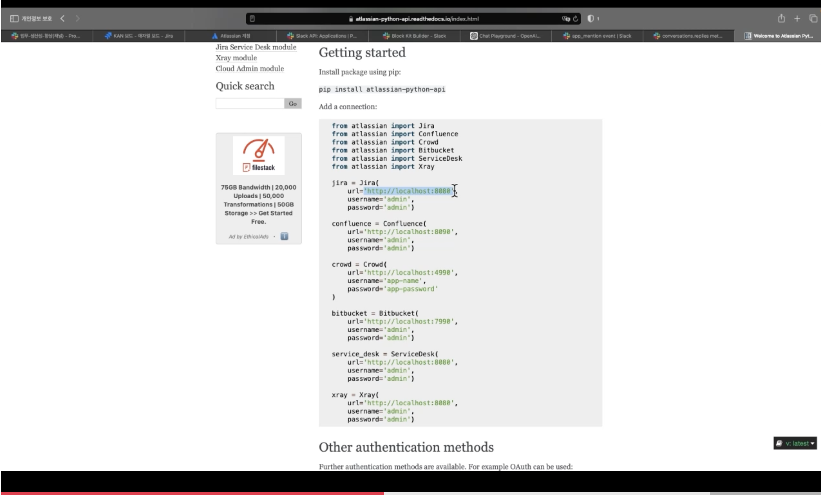 제가 수강한 강의는 슬랙과 프롬프트엔지니어링을 사용해서 Jira의 이슈를 생성하는 애플리케이션을 개발하는 것을 목표로 진행되었습니다. 이를 위해 슬랙과 지라의 기본 개념을 설명하고 각 서비스의 API를 어떻게 사용하는지 학습합니다. 강의에서 학습하는 외부 API에 대한 모든 학습은 공식문서를 보며 진행합니다.