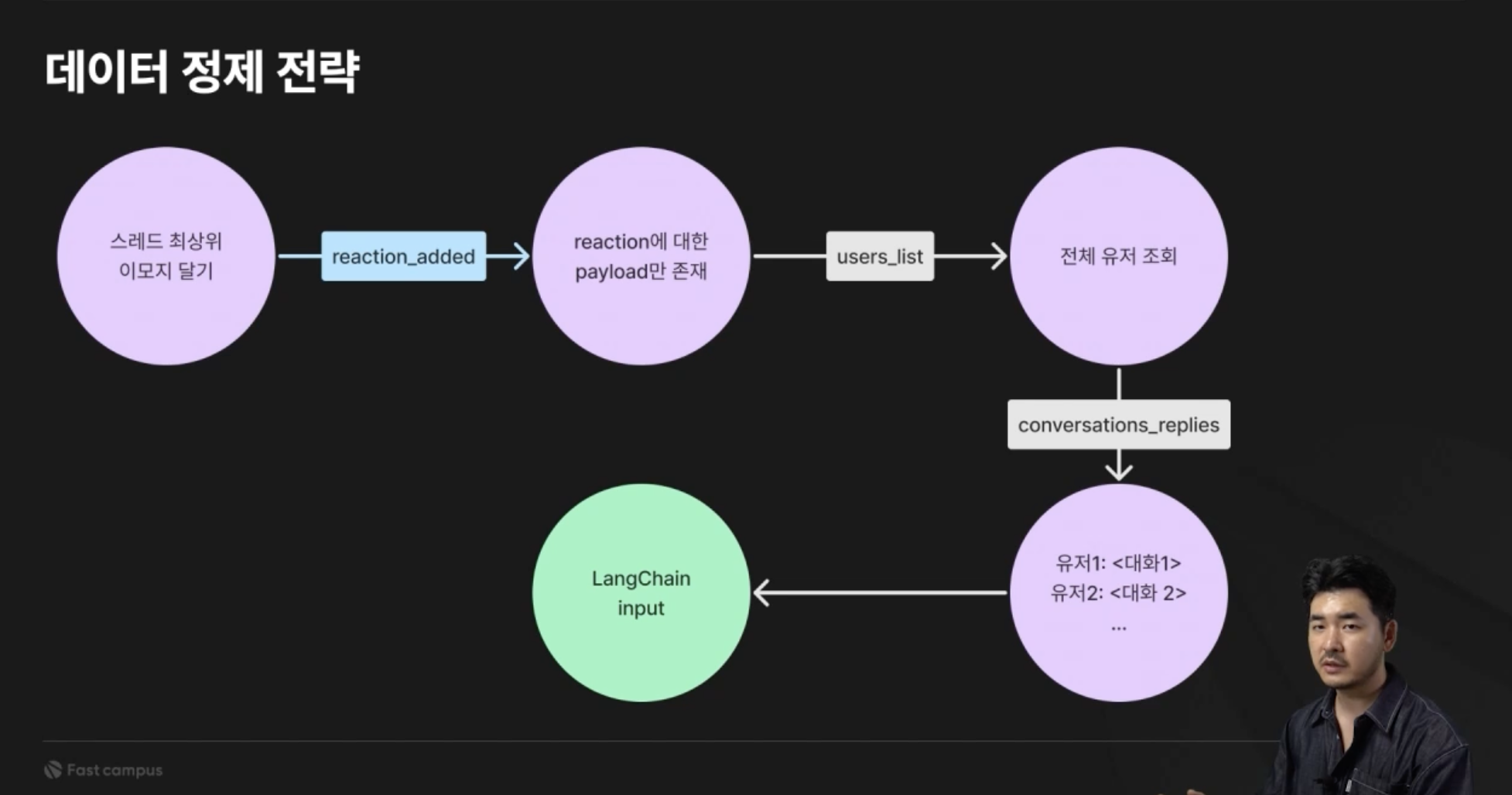 해결책으로 슬랙에 입력되는 텍스트를 기반으로 프롬프트 엔지니어링을 통해 지라 이슈까지 생성하는 전 과정을 학습합니다. 이때 개발의 기본 개념인 OOP, JSON 등의 요소도 학습합니다.