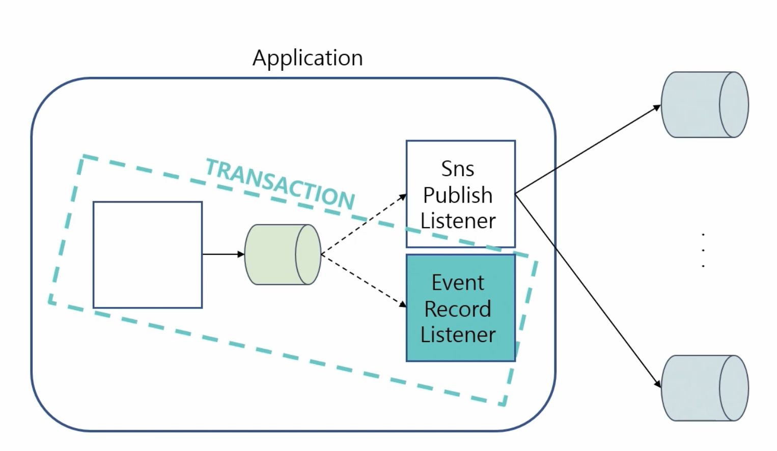 - 발행된 내부 이벤트는 시스템 내의 이벤트 처리기(두 번째 구독자 계층)가 구독