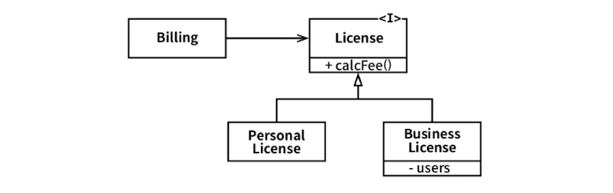 Billing 애플리테이션의 행위가 License하위 타입 중 무엇을 사용하는지에 전혀 의존하지 않기 때문에
