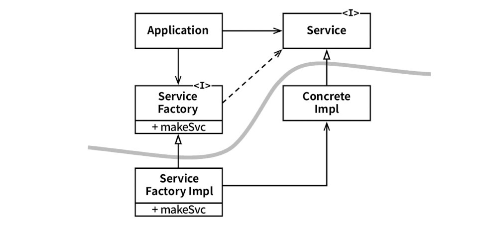Application은 구현체인 ConcreteImpl를 생성하기 위해 추상체인 ServiceFactory를 사용